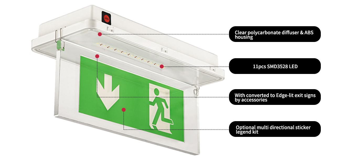 *Met geconverteerde naar rand-verlichte exitborden door accessoires